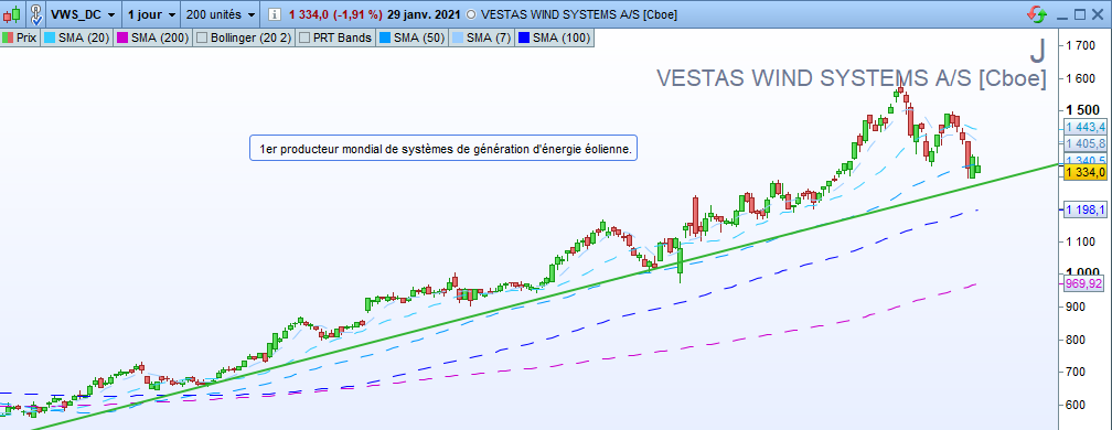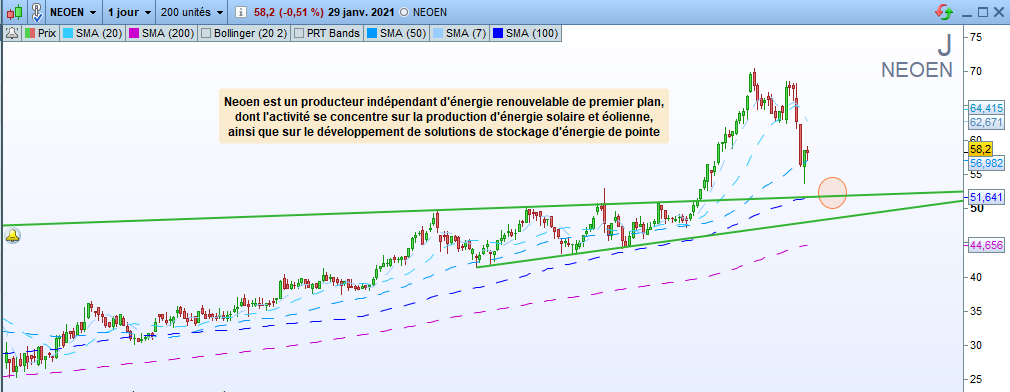 Magnifique valeur trendfollowing depuis des années. Elle a pâti de la chute des indices de la semaine passée, néanmoins la tendance de fond reste inchangée. Cela nous donne un bon point d’entrée pour jouer le retour sur le haut du canal haussier.